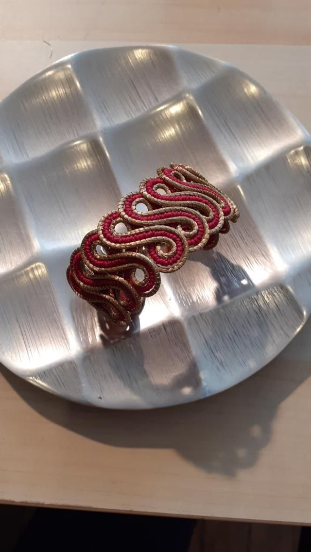 Manchette SS, en or Végétal et cordon de coton Rouge